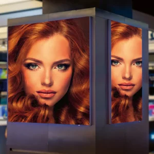 L’impression backlit exige des supports translucides à diffusion homogène. Le F’flex Backlit SC 510 B1 répond à cette contrainte avec un coefficient de transmission lumineuse étudié pour les caissons LED et néons. Sa structure empêche l’apparition de points chauds (zones de surbrillance) qui dégradent la perception visuelle nocturne. Le grammage de 510 g/m² garantit une opacité suffisante en vision de jour, tout en préservant la luminosité en mode rétroéclairé. Cette polyvalence jour/nuit en fait le support de référence pour enseignes lumineuses, totems publicitaires, signalétique aéroportuaire et affichage retail premium.